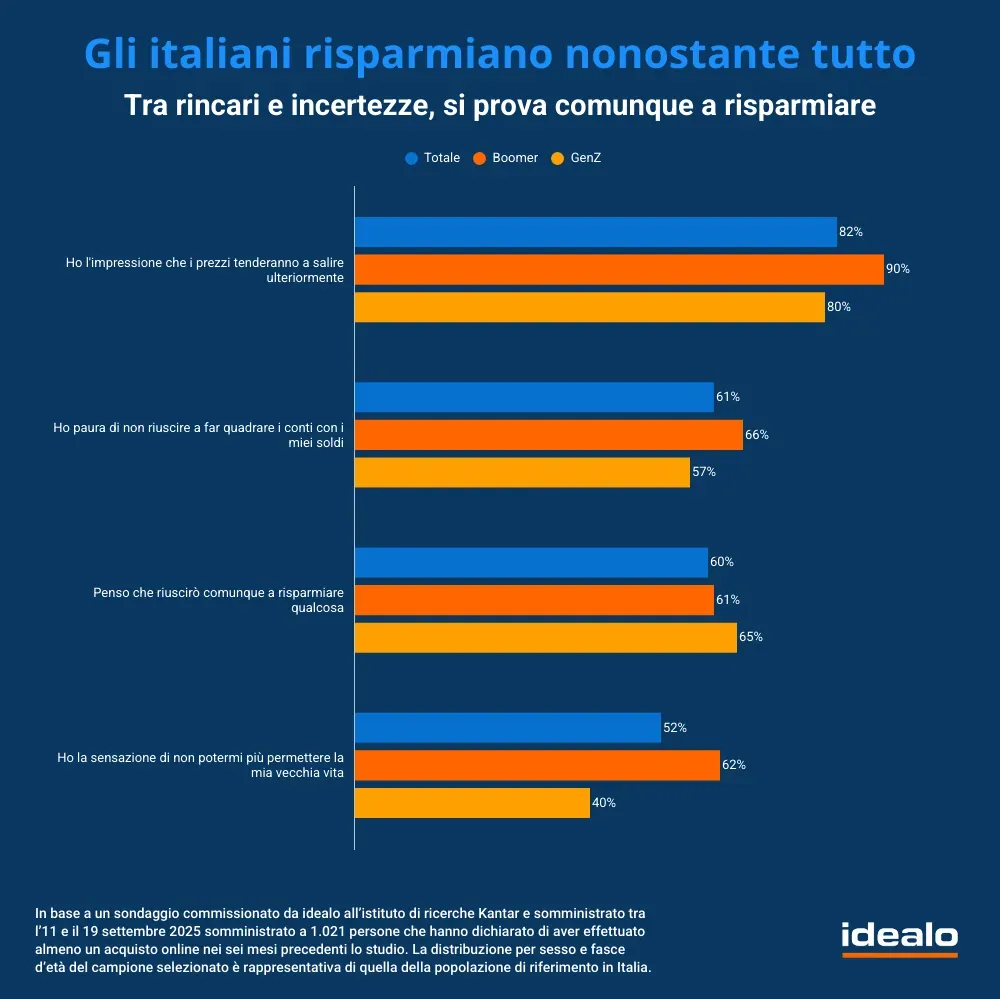 Secondo i dati dell’indagine c’è ancora molta paura per i rincari. La GenZ, a sorpresa, si rivela più previdente dei Boomer ed è già attenta al risparmio
