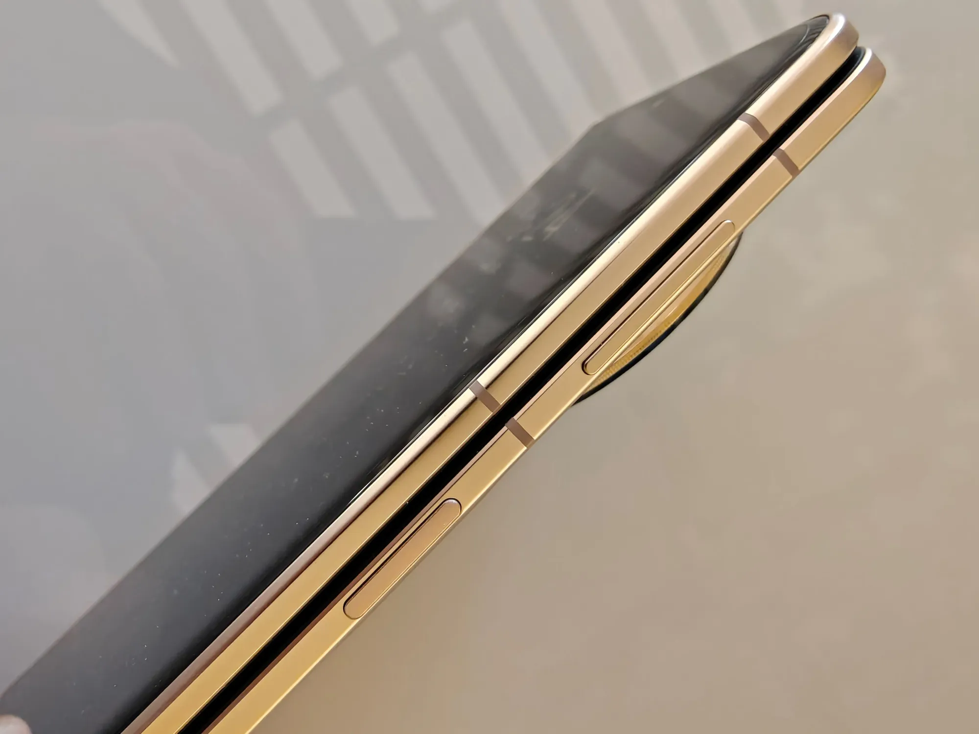 Il modulo fotocamera sul retro è piuttosto voluminoso ma è posizionato al centro, dunque lo smartphone non oscilla quando poggiato su una superficie. L'apertura delle due parti si effettua con una resistenza piacevole e morbida e la piega al centro è quasi impercettibile quando lo schermo è acceso e lo si fissa direttamente; tuttavia, è possibile trovarla facilmente se si guarda lo smartphone da una certa angolazione, ma l'impatto in termini di estetica è veramente minimo. Anche la chiusura delle due parti risulta molto morbida e la perfetta aderenza delle superfici restituisce una netta sensazione premium di compattezza e solidità. Honor certifica la cerniera, dove risiede il congegno di apertura per 500.000 cicli, pari ad un utilizzo medio di 13 anni circa. Piccola nota: quando apriamo il Magic V5, la posizione del sensore biometrico di sblocco situato nel pulsante laterale crea qualche piccolo problema alla presa del telefono. L'Honor Magic V5 è disponibile in tre colori: nero, Dawn Gold (variante in prova) e Ivory White.