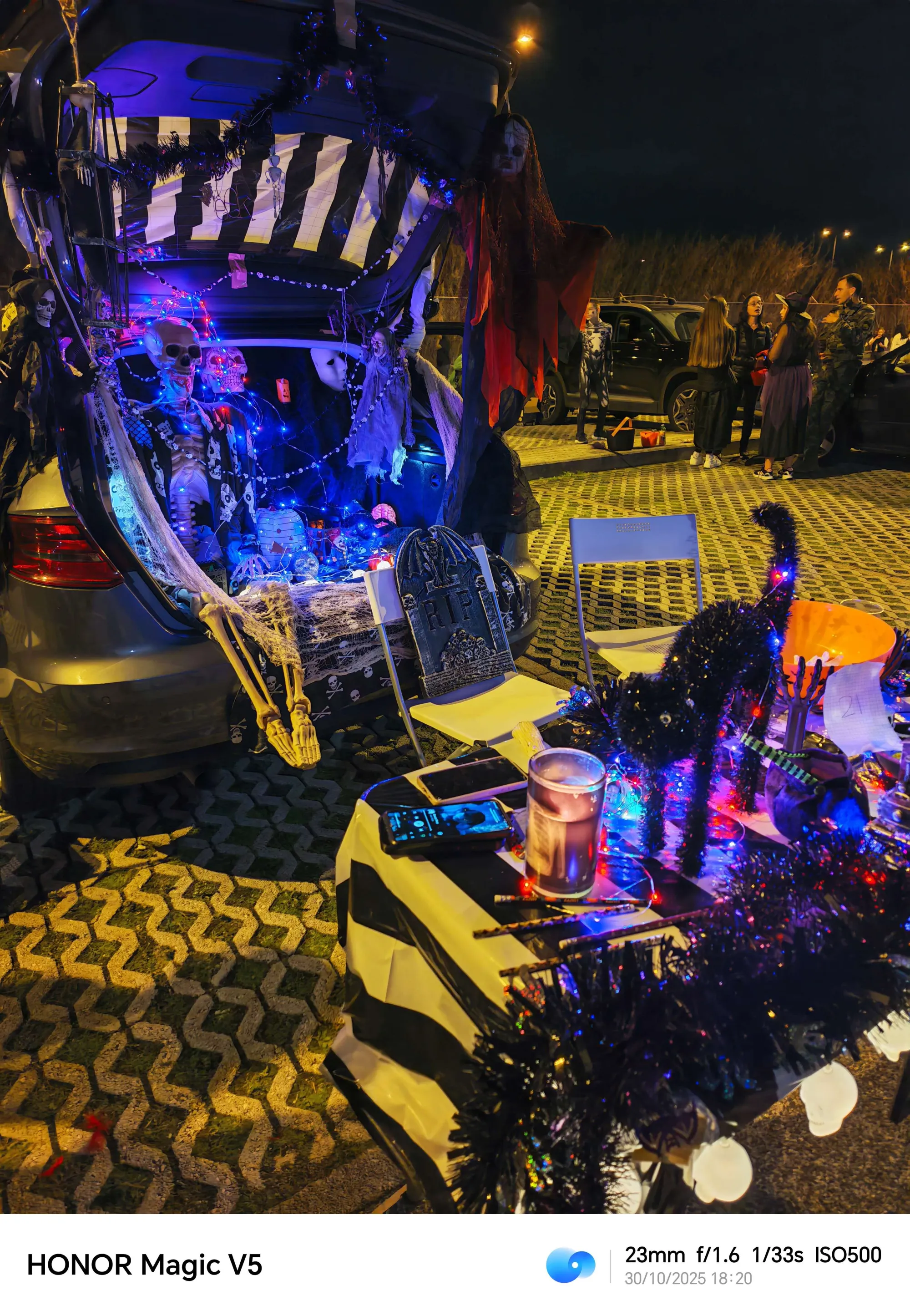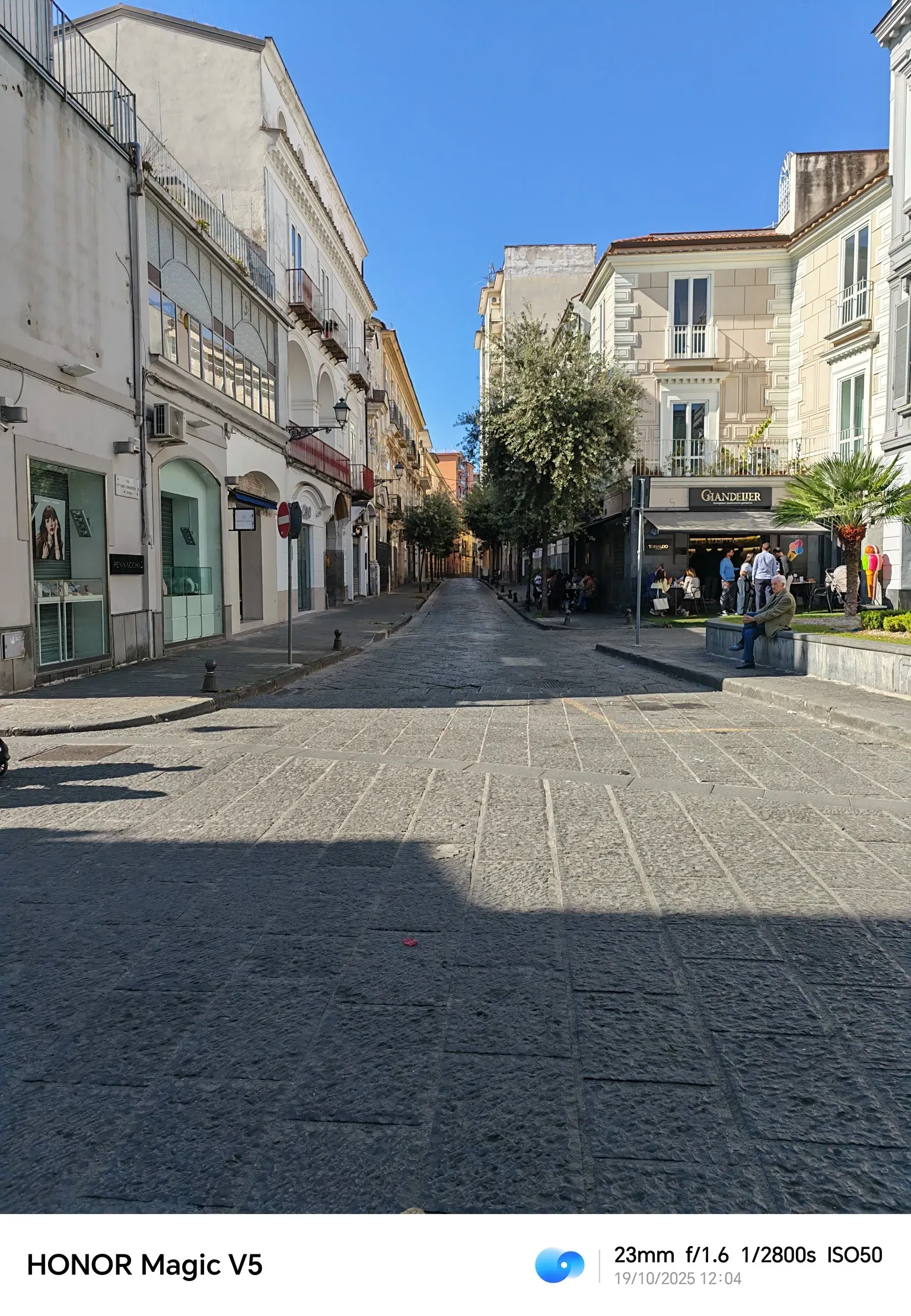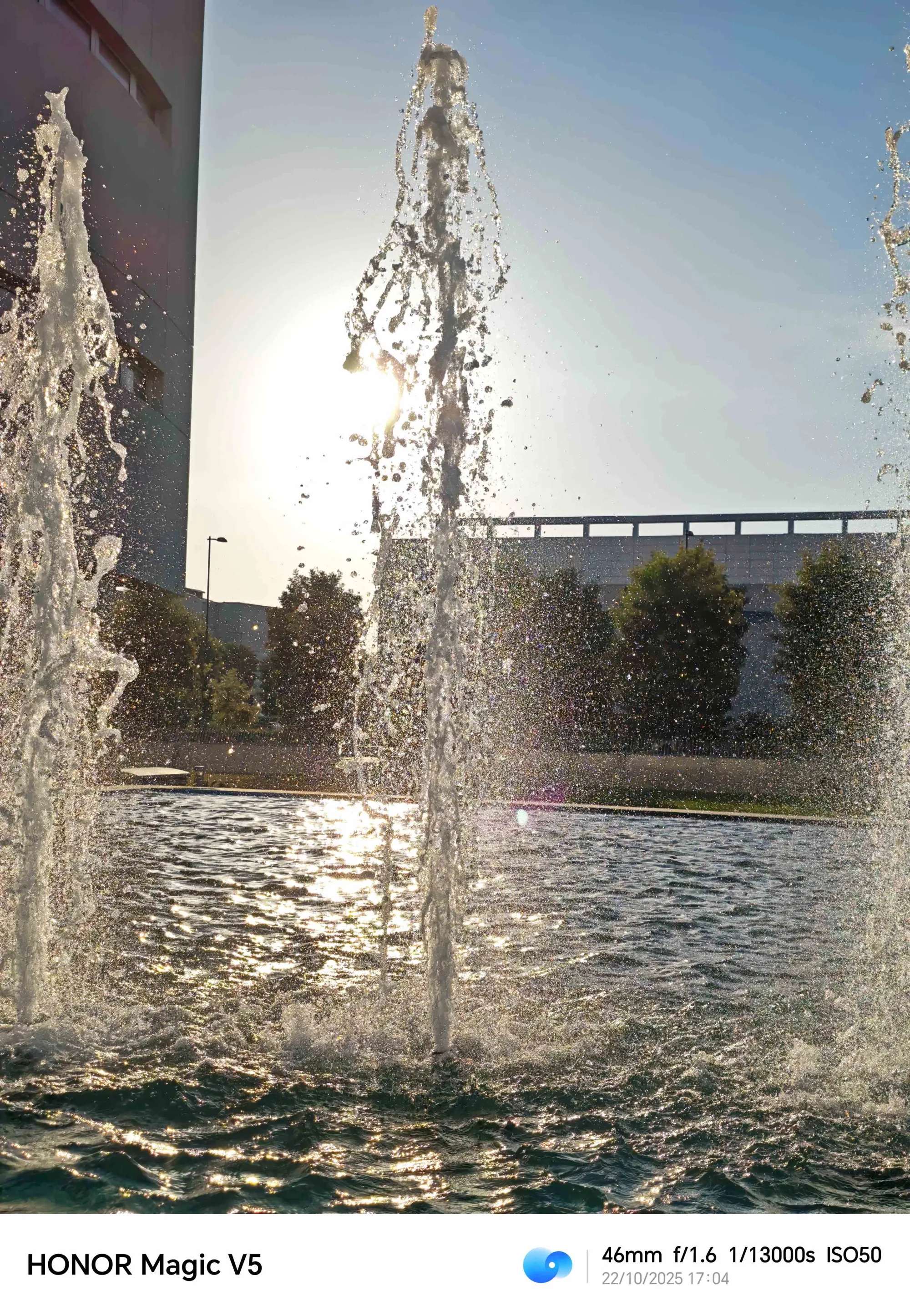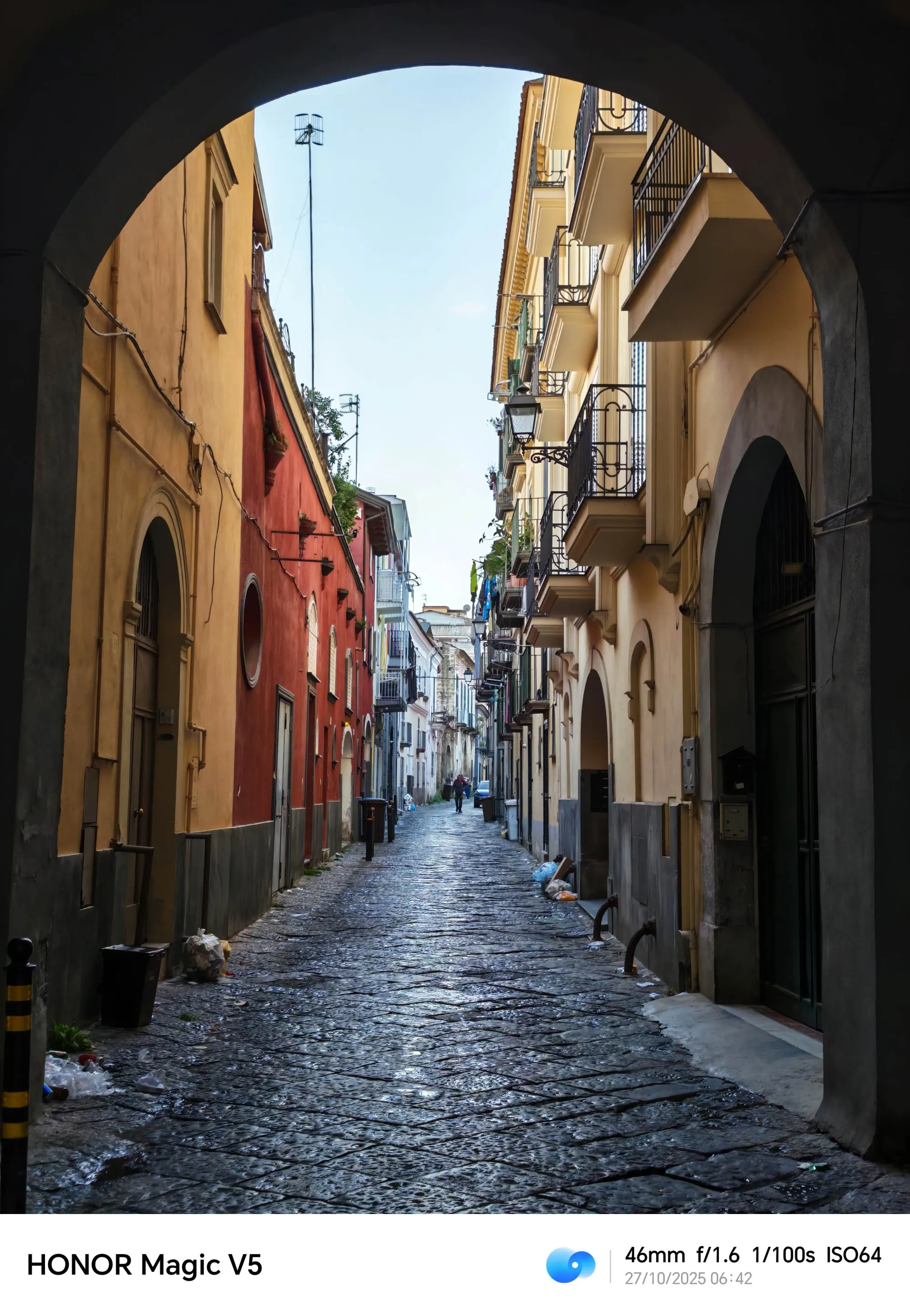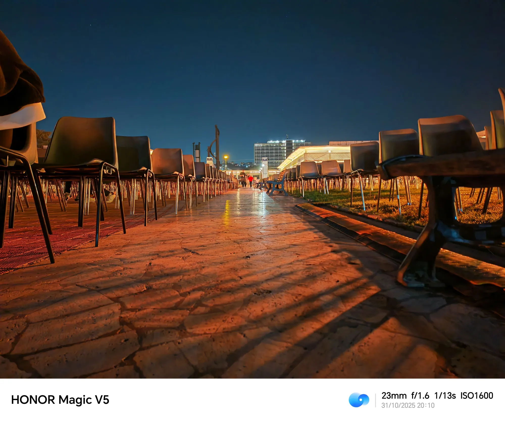Il Magic V5 è dotato di una tripla fotocamera posteriore, composta da un sensore principale con stabilizzazione ottica, un teleobiettivo anch'esso stabilizzato otticamente e con zoom ottico 3x, e infine un sensore grandangolare. In condizioni di luce diurna, la tripla fotocamera posteriore offre immagini con un'eccellente gamma dinamica anche in scenari fortemente illuminati dal sole e dall'ombra, pur mantenendo una resa cromatica realistica e dettagli fino allo zoom 6X.