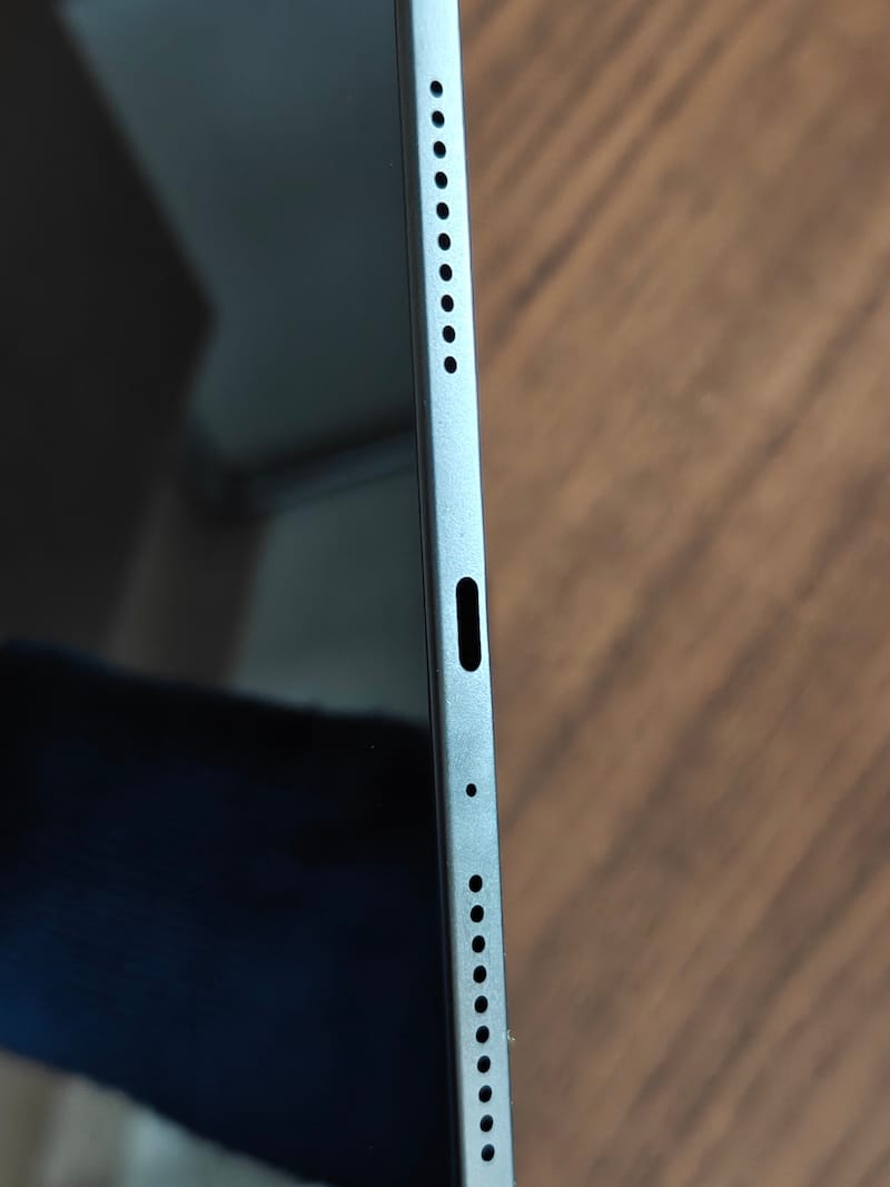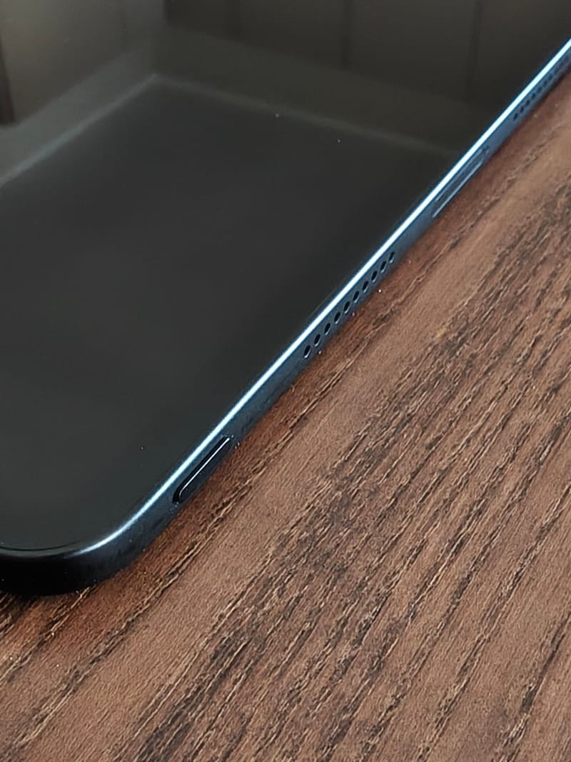 Tenendo il dispositivo orientato verticalmente, rivolto verso di noi, troviamo il pulsante di accensione nell'angolo in alto a destra, con i bilancieri del volume situati accanto, anch'essi sul lato destro del telaio. Oltre ad avere quattro griglie per altoparlanti (due sopra e due sotto), il lato superiore ha uno slot per la scheda SIM (il Pad Go 2 è disponibile in una variante 5G opzionale), mentre il telaio inferiore ha il microfono principale, la porta USB-C e le ltre due griglie degli speakers.