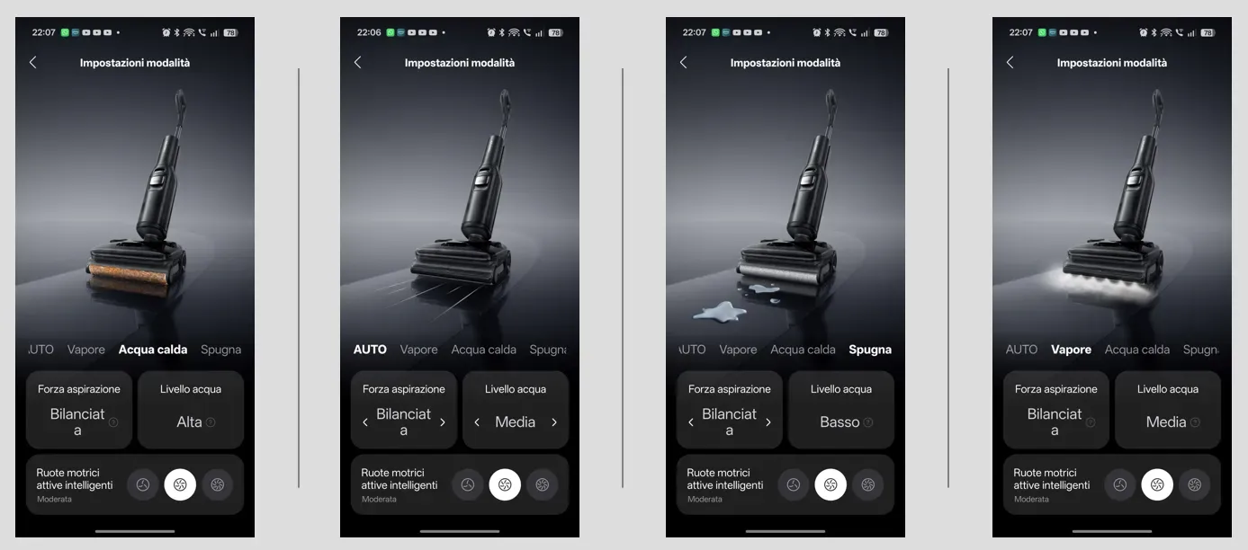 Tramite la comoda App, scaricabile su dispositivi iOs e Android, è possibile personalizzare le impostazioni di pulizia, programmare il tipo di auto-pulizia, selezionare le modalità di funzionamento e perfino "guidare" l'F25 Ultra quando non vogliamo piegarci e lasciamo che l'aspirapolvere si muova autonomamente sotto i mobili bassi.